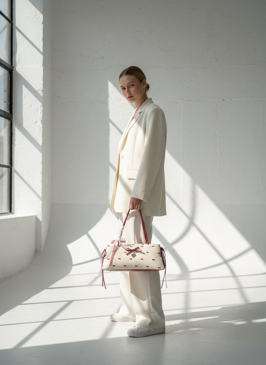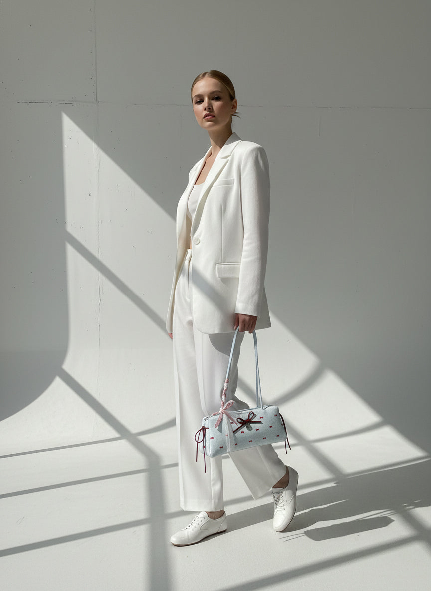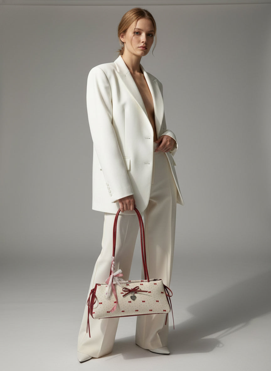 Elevate any outfit with this charming Bow Print Shoulder Bag, designed for those who love a feminine yet modern touch. Crafted with a structured rectangular silhouette, this bag features an all-over bow print with matching ribbon details and a heart charm that adds extra sweetness. The slim double handles offer comfortable wear on the shoulder, while the roomy interior easily fits your daily essentials like wallet, phone, makeup, and more. Whether you’re heading out for brunch, a date, or a weekend stroll, this bag brings effortless cuteness and style.